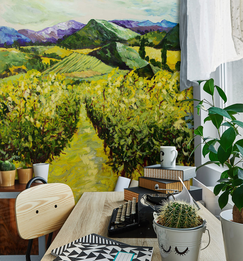 Make sure the wall surface is flat, clean and smooth. A clean and dry wall will help the adhesive from your wall mural to keep its stickiness. Put all panels on the ground, check the order. Measure and write down the dimensions of each panel. Mark vertical guidelines according to the panel's dimensions. Leave 2-3cm overlap between panels.
