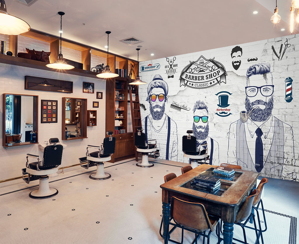 3D Man Cut Hair 1455 Barber Shop Wall Murals