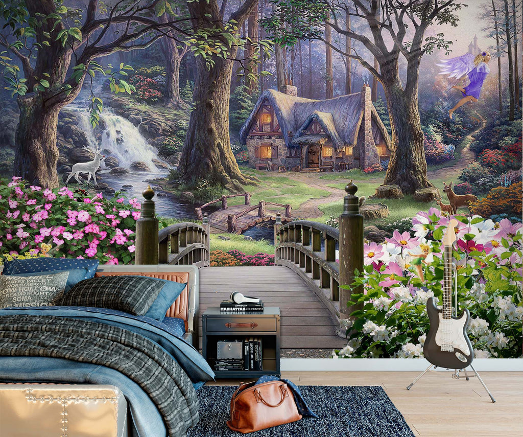 Align panel 2 to panel 1. Simply match the pattern of the mural (with 2cm overlap).No need to cut. Repeat for additional panels. Trim any ceiling and baseboard overage, lt's better to wipe the mural's surface with a wet cloth after the installation. Because it will make more sticky.