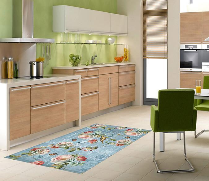 3D Postcard Flowers Butterflies 609 Kitchen Mat Floor Mural