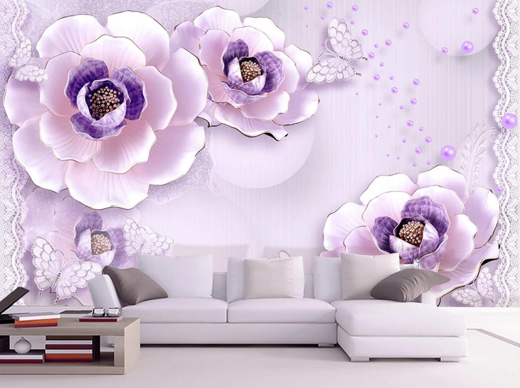 3D Purple Pearl Flower WC728 Wall Murals Zoe