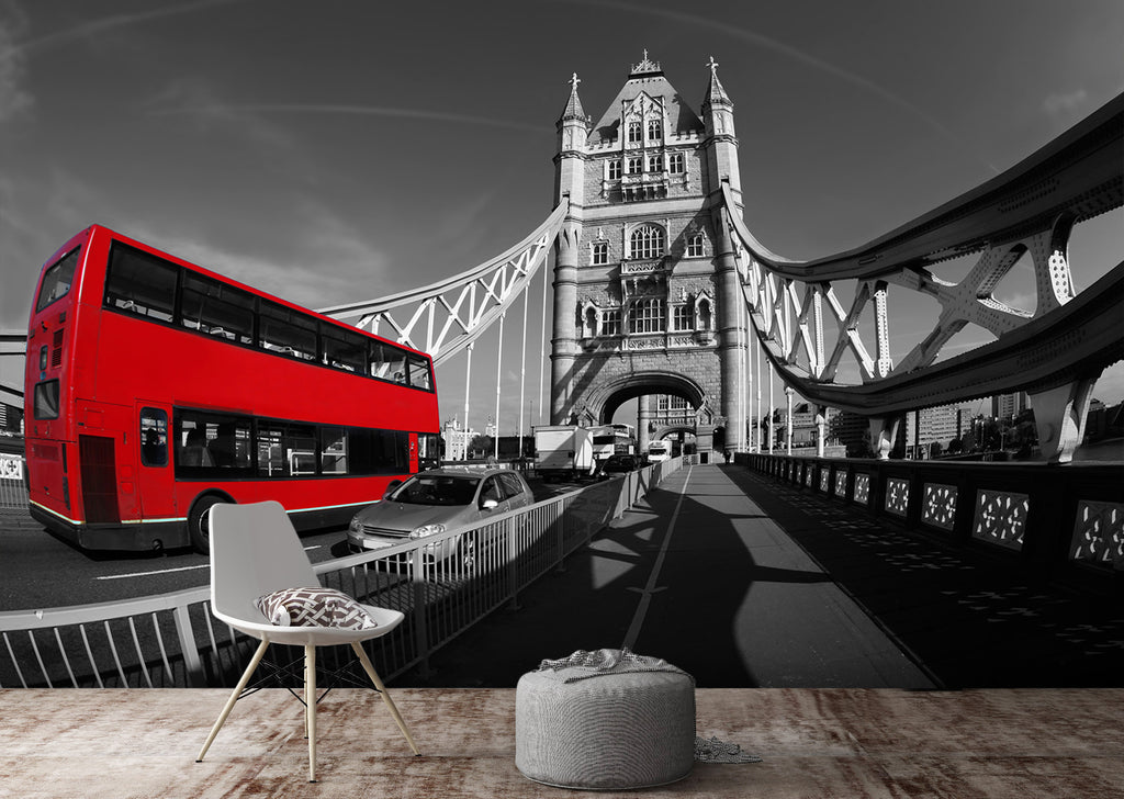 3D Red Bus Bridge 072 Vehicle Wall Murals Zoe