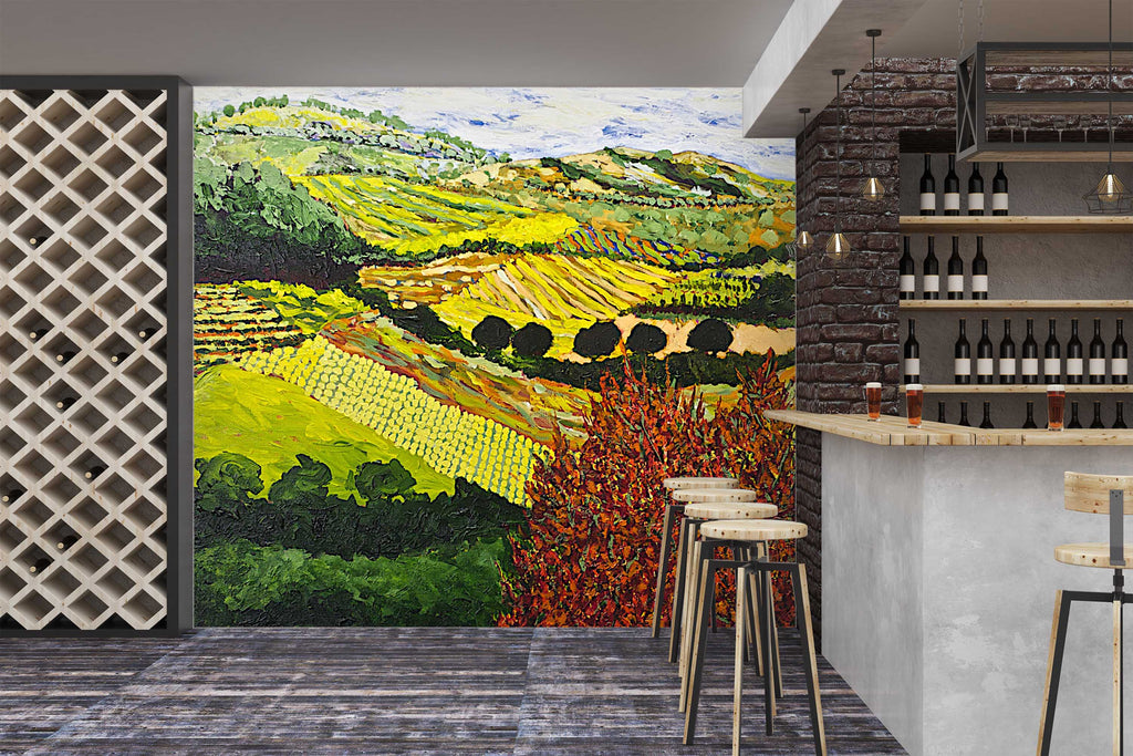 Make sure the wall surface is flat, clean and smooth. A clean and dry wall will help the adhesive from your wall mural to keep its stickiness. Put all panels on the ground, check the order. Measure and write down the dimensions of each panel. Mark vertical guidelines according to the panel's dimensions. Leave 2-3cm overlap between panels.