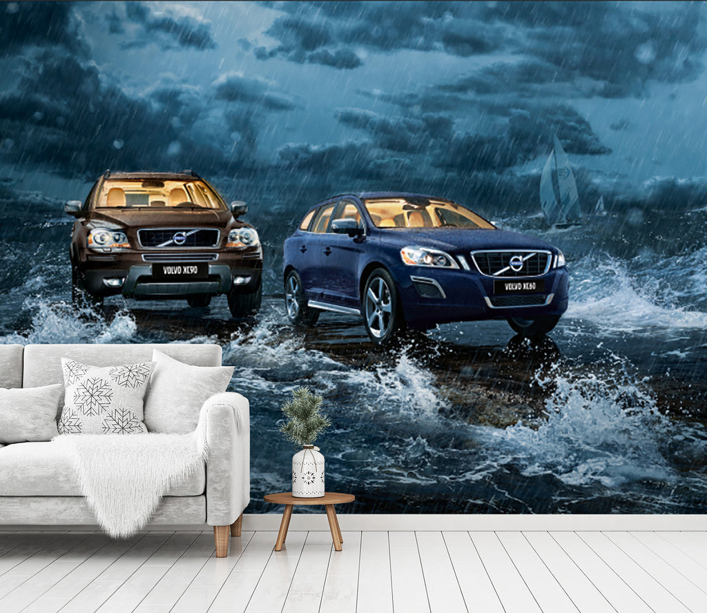 3D Stormy Sea Car 017 Vehicle Wall Murals