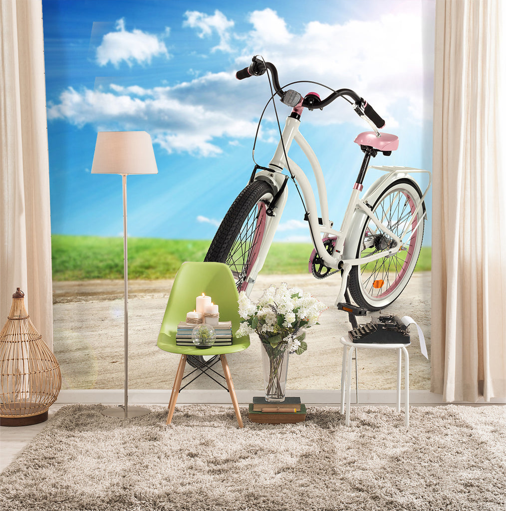 3D Sunny Grass Bike 010 Vehicle Wall Murals