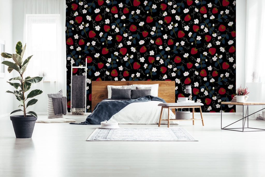 3D White Floral Strawberry 120108 Kashmira Jayaprakash Wall Mural Wall Murals Sinsin