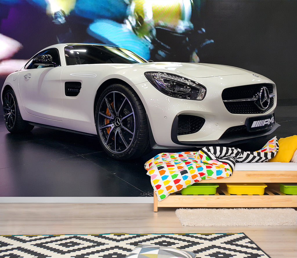 3D White Sports Car 060 Vehicle Wall Murals Zoe