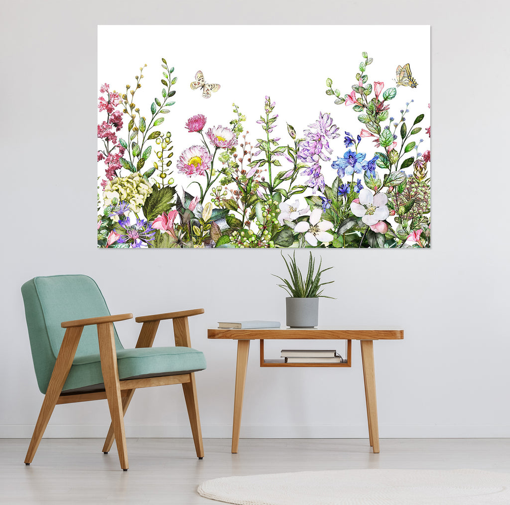 Make sure the wall surface is flat, clean and smooth. A clean and dry wall will help the adhesive from your wall mural to keep its stickiness. Put all panels on the ground, check the order. Measure and write down the dimensions of each panel. Mark vertical guidelines according to the panel's dimensions. Leave 2-3cm overlap between panels.