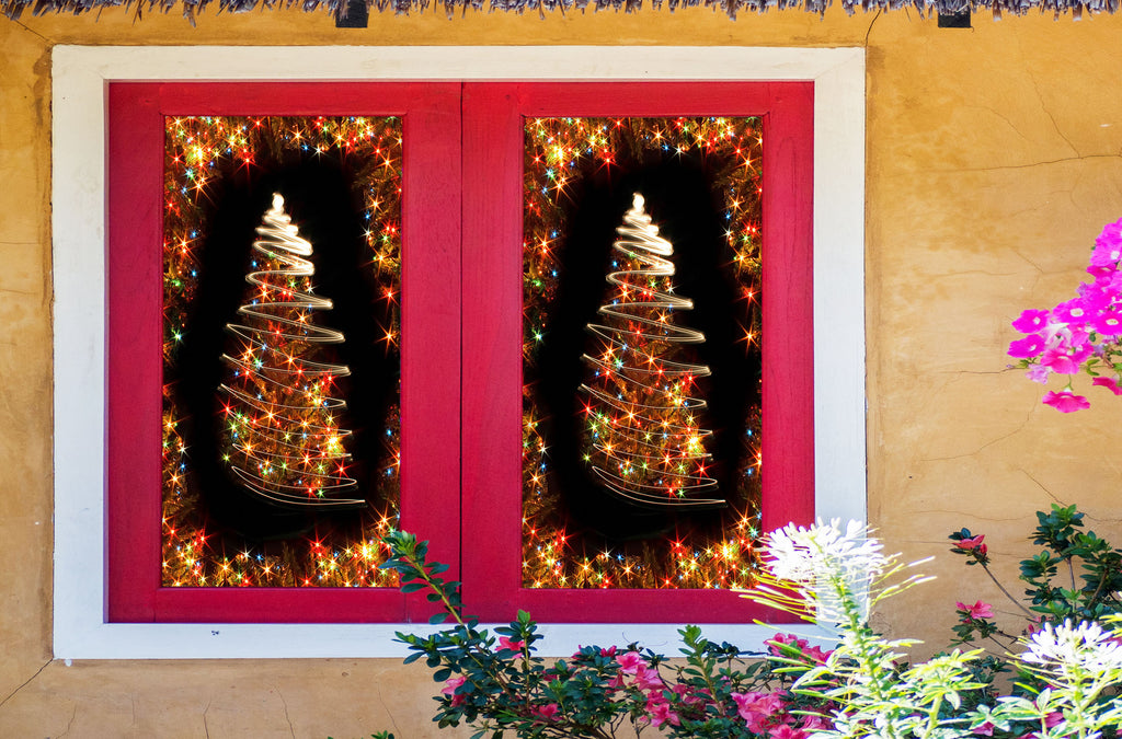 3D Lantern Christmas Tree 31001 Christmas Window Film Print Sticker Cling Stained Glass Xmas