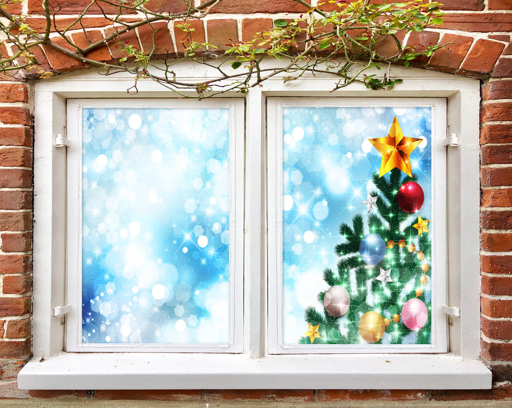 3D Tree Five-Pointed Star 31036 Christmas Window Film Print Sticker Cling Stained Glass Xmas
