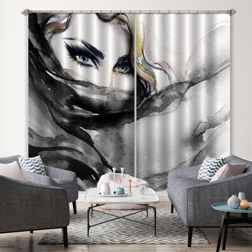 3D Black Yarn Woman 046 Curtains Drapes Zoe