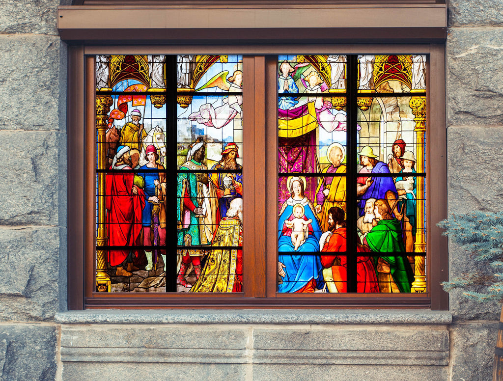 3D Church Baby 117 Window Film Print Sticker Cling Stained Glass UV Block