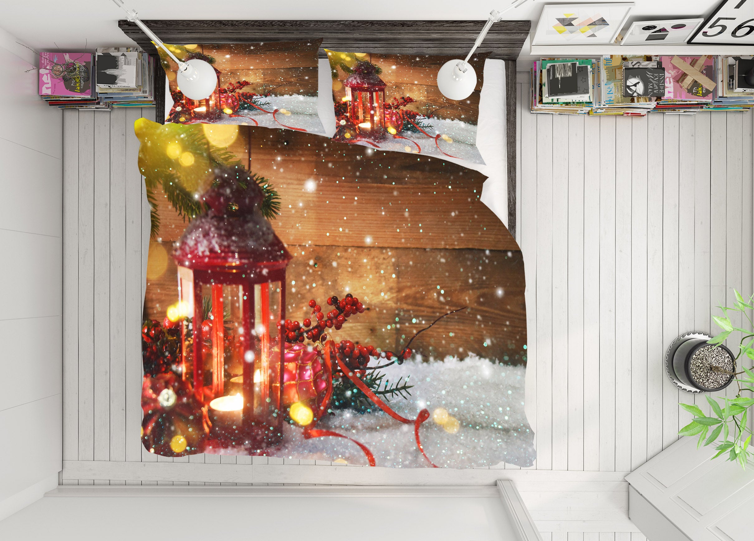 3D Snow Candle 53004 Christmas Quilt Duvet Cover Xmas Bed Pillowcases