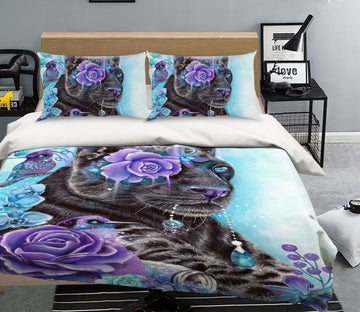 3D Red Rose Panther 8602 Sheena Pike Bedding Bed Pillowcases Quilt Cover Duvet Cover