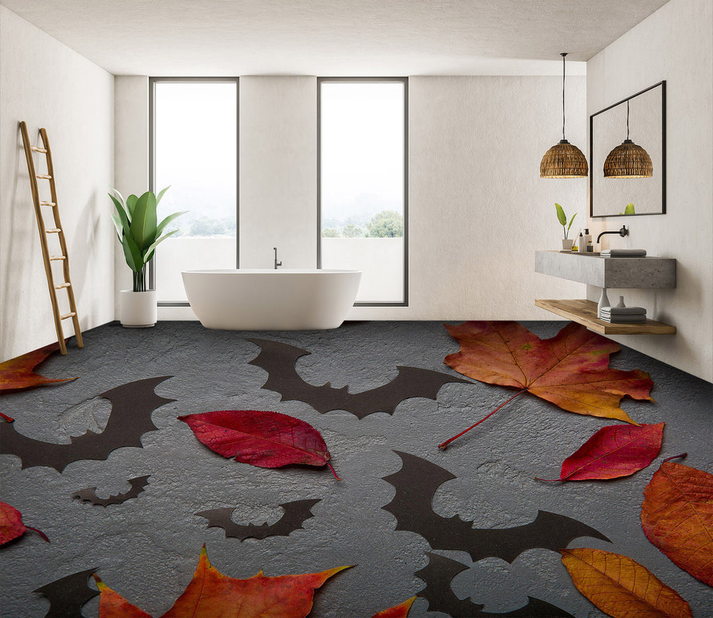 3D Bat Leaves 011 Floor Mural Self-Adhesive Sticker Bathroom Non-slip Waterproof Flooring Murals