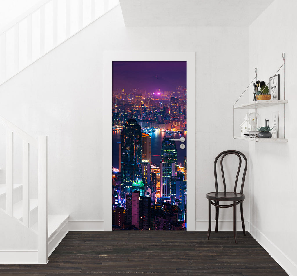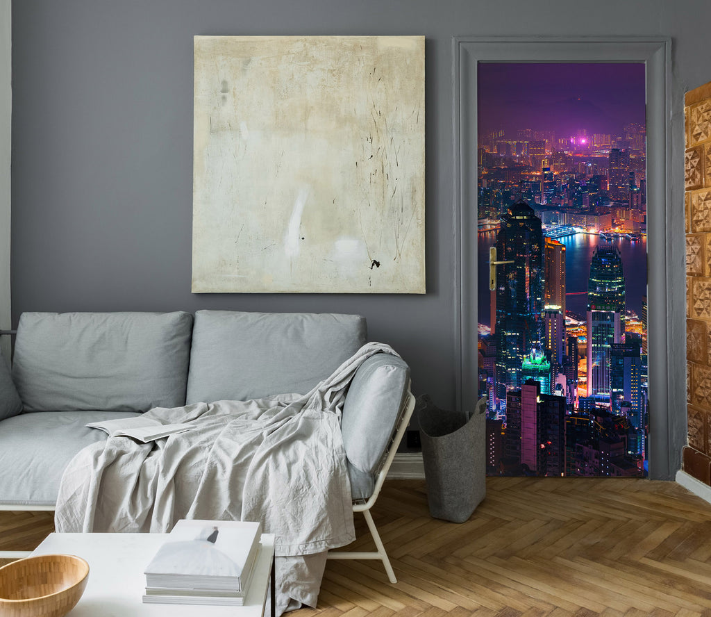 3D Building Colorful Lights Night 119111 Marco Carmassi Door Mural Sinsin