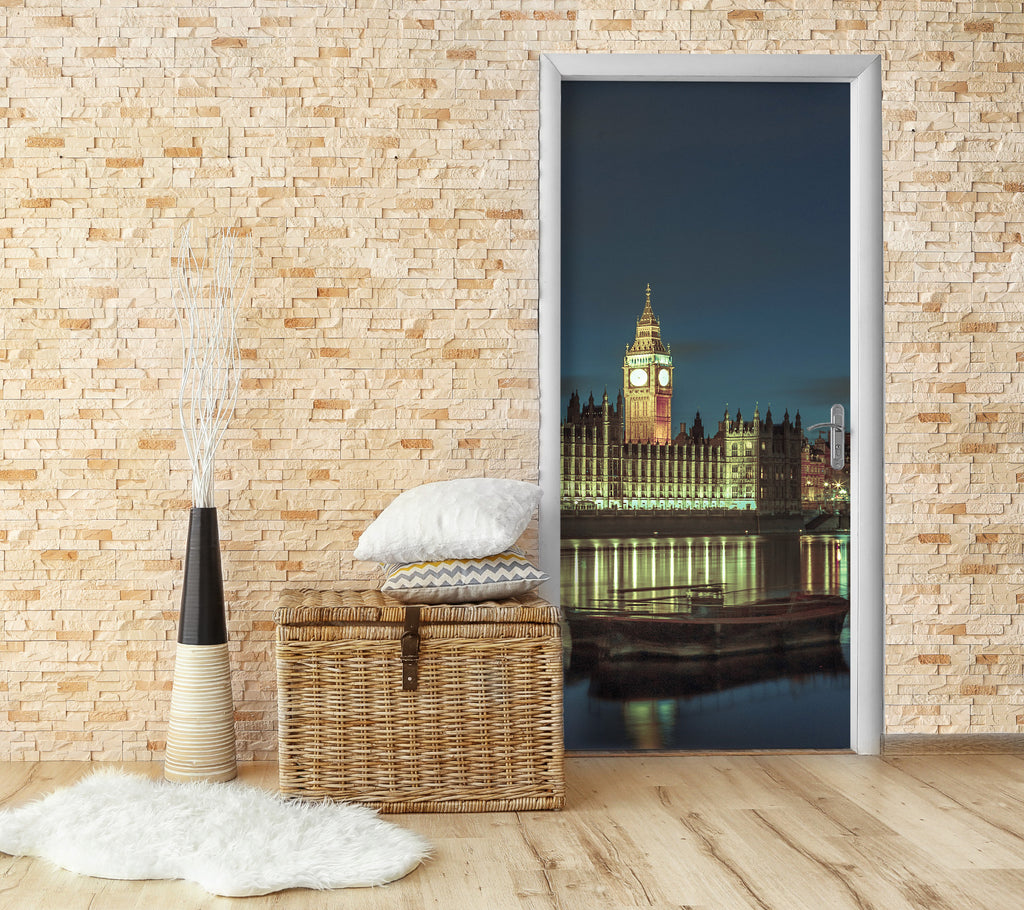 3D Clock Tower Night Shadow 10693 Assaf Frank Door Mural Sinsin