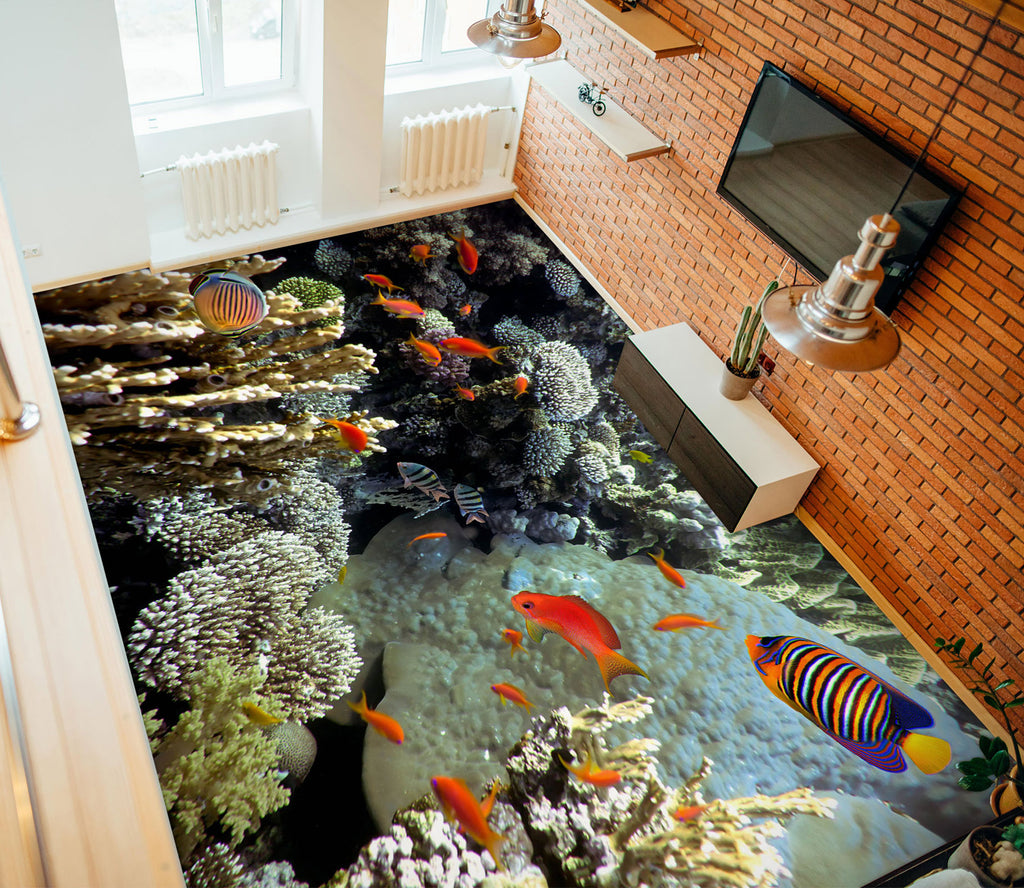 3D Color Striped Fish 613 Floor Mural Wallpaper Murals Rug & Mat Print Epoxy waterproof bath floor