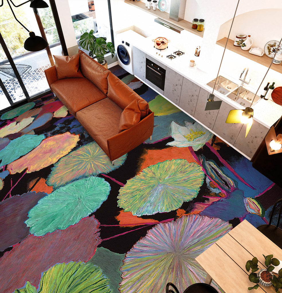 3D Colorful Lotus Leaf 96121 Allan P. Friedlander Floor Mural Wallpaper Murals Self-Adhesive Removable Print Epoxy