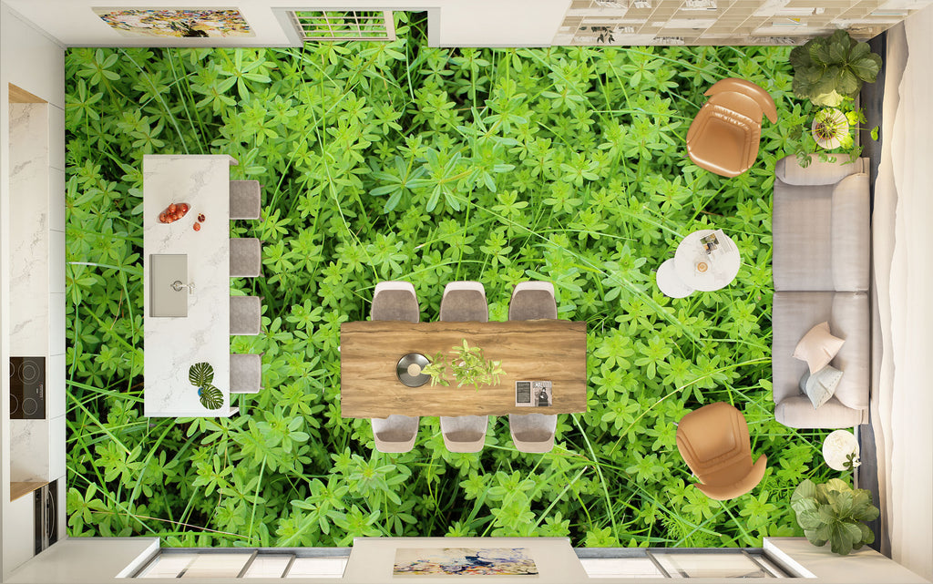 3D Cool Green Leaves 1512 Floor Mural Romy
