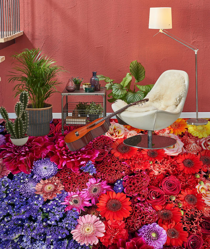 3D Crimson Chrysanthemum 375 Floor Mural Romy