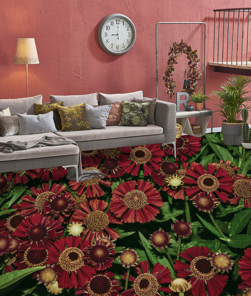 3D Crimson Chrysanthemum Art 819 Floor Mural Romy