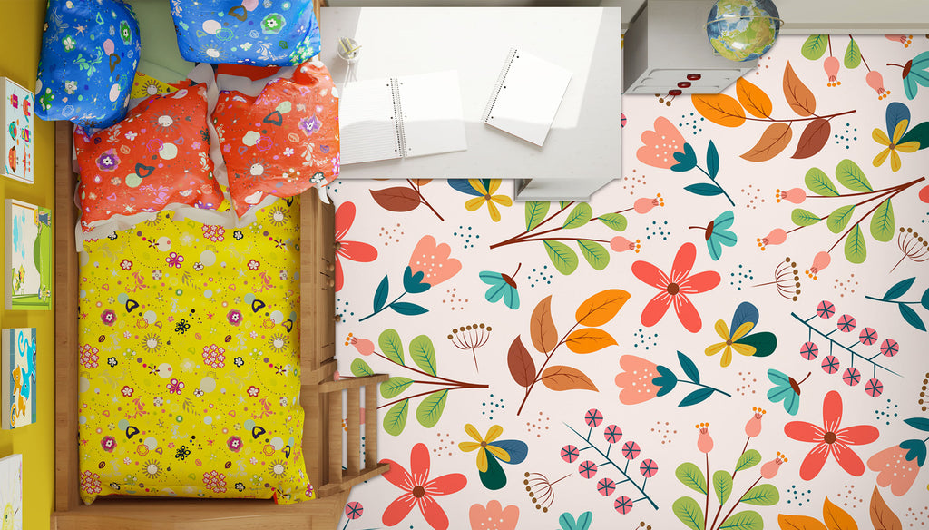 3D Cute Leaves And Flowers 1275 Floor Mural Romy