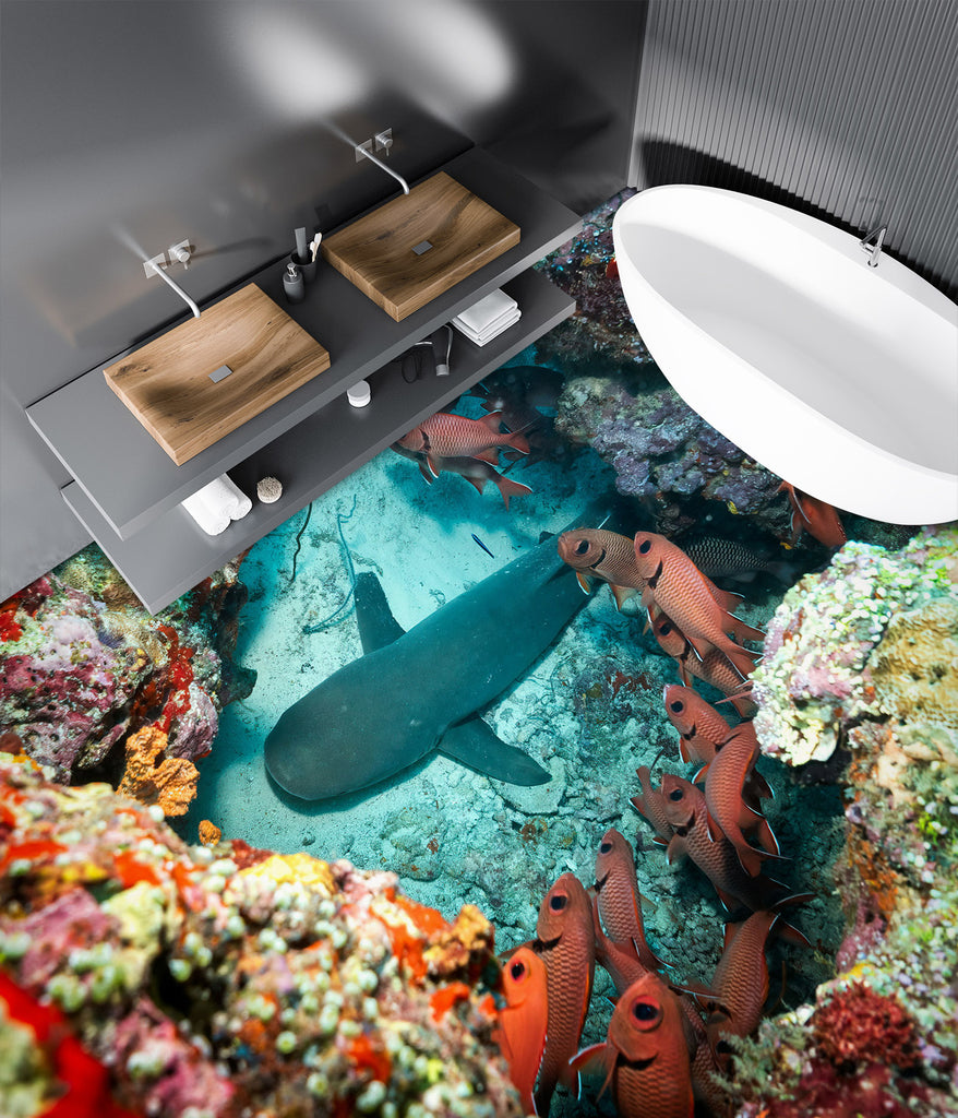 3D Dangerous Shark 252 Floor Mural Wallpaper Murals Rug & Mat Print Epoxy waterproof bath floor