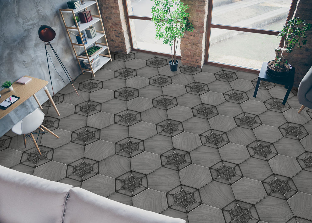 3D Dark Gray Hexagons 905 Floor Mural Romy