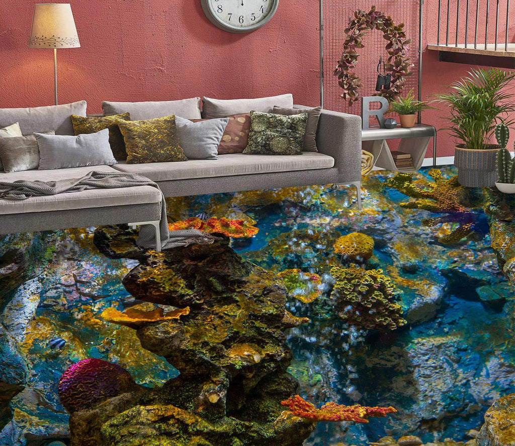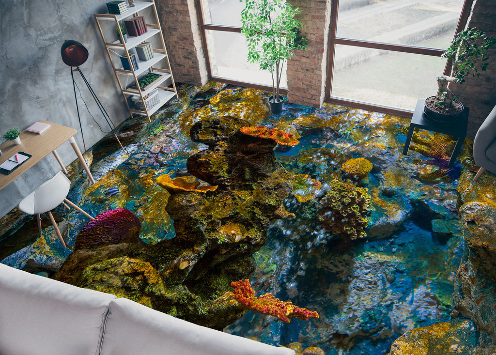 3D Dark Green Coral 092 Floor Mural Wallpaper Murals Rug & Mat Print Epoxy waterproof bath floor