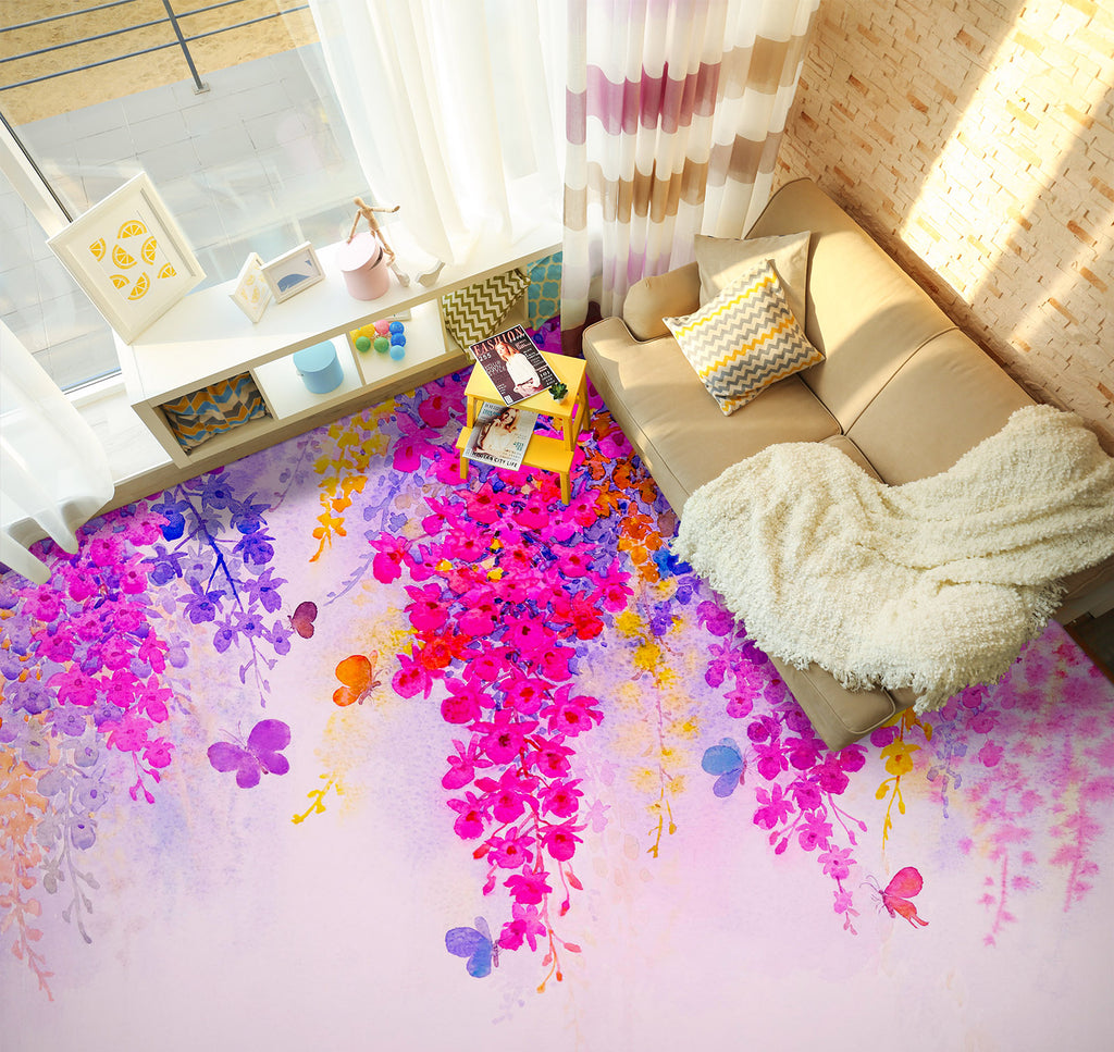 3D Dark Pink Flower Bunch 1232 Floor Mural Wallpaper Murals Self-Adhesive Removable Print Epoxy