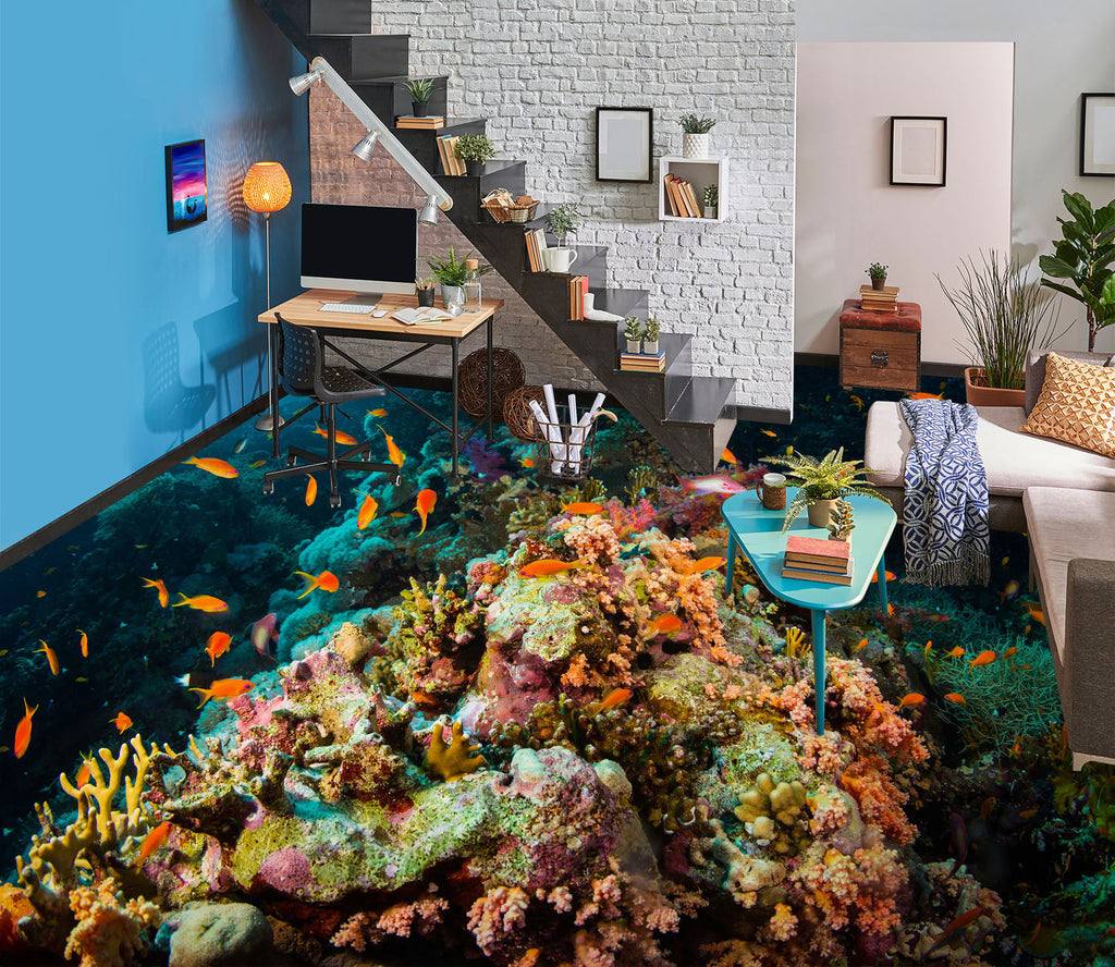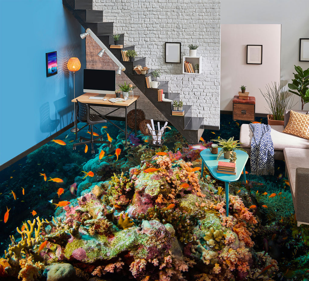 3D Deep Green Sea 053 Floor Mural Wallpaper Murals Rug & Mat Print Epoxy waterproof bath floor