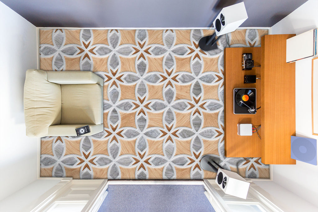 Make guidelines on the ground. Our Floor murals are always laid from the left to the right. It is essential that the first length is straight.