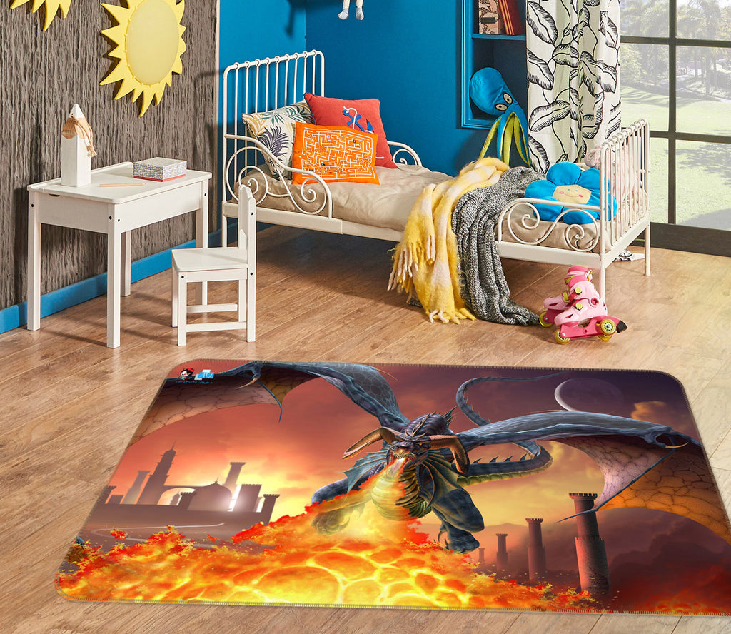3D Dragon Spitfire 4107 Tom Wood Rug Non Slip Rug Mat