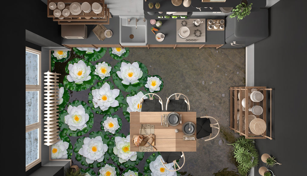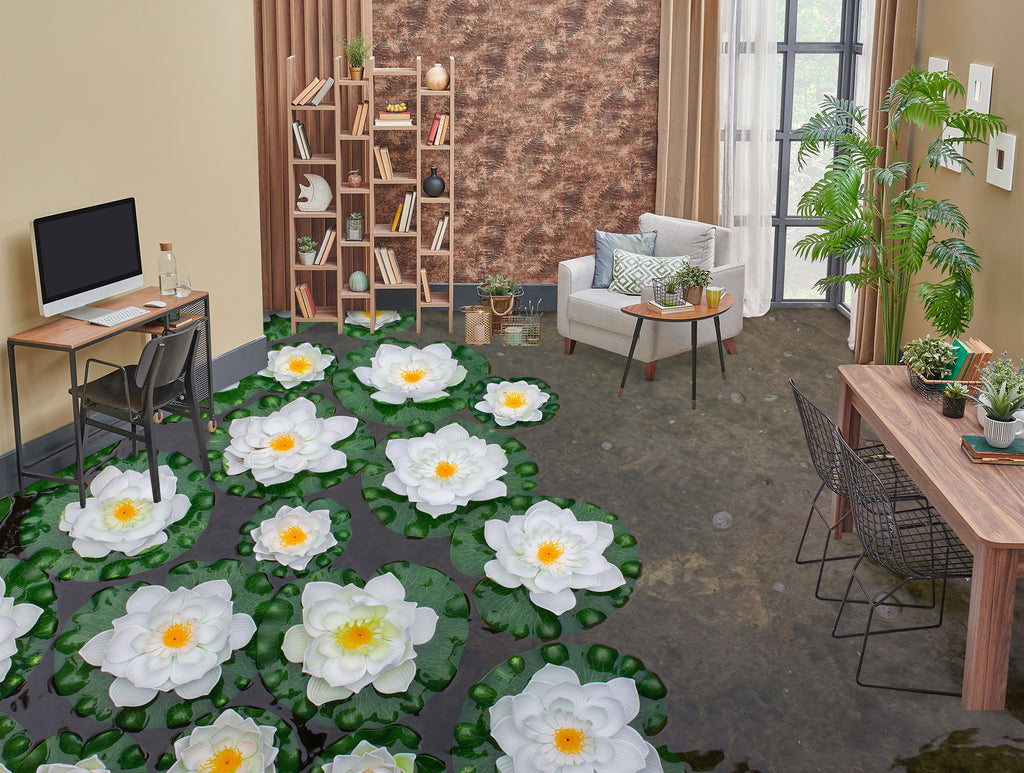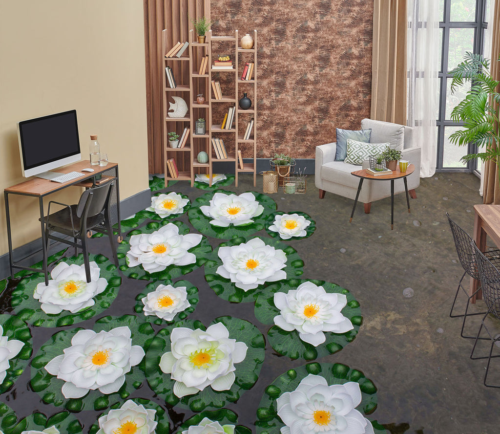 3D Dreamy White Water Lily 343 Floor Mural Romy