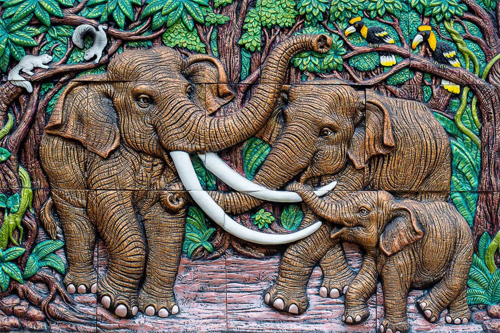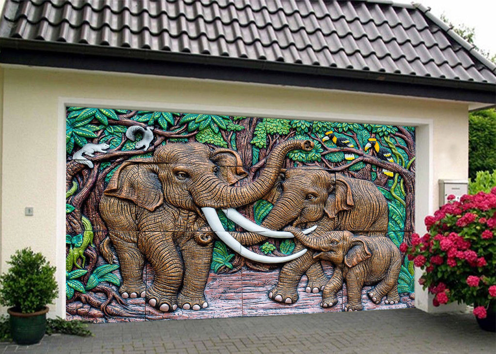 3D Elephants Family 425 Garage Door Mural