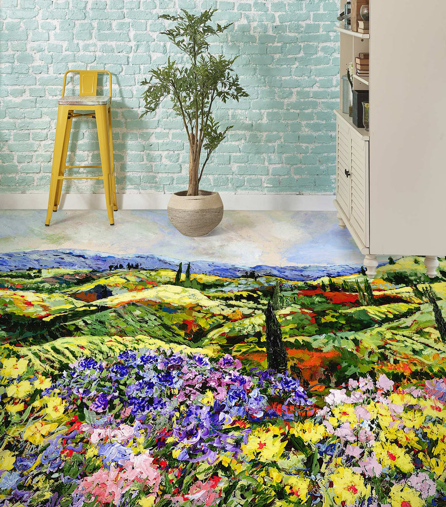 3D Field Colorful Flowers 9537 Allan P. Friedlander Floor Mural Wallpaper Murals Self-Adhesive Removable Print Epoxy