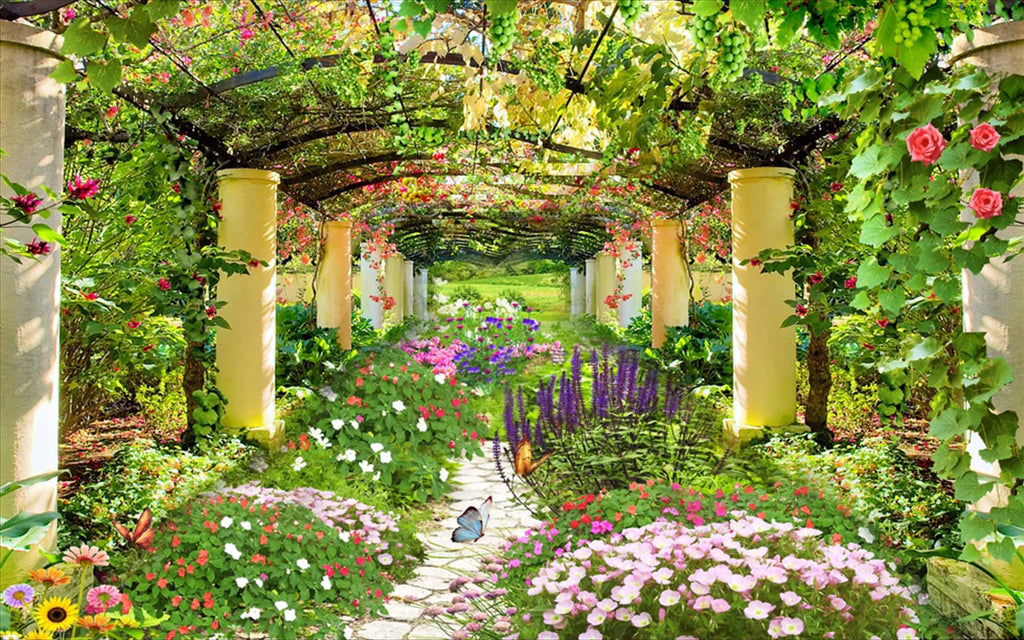 3D Flowers Vines Corridor 359 Garage Door Mural