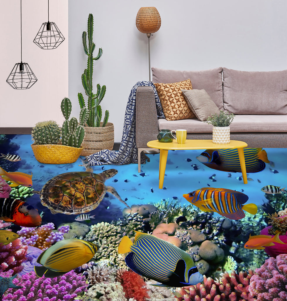 3D Fun Striped Fish 630 Floor Mural Wallpaper Murals Rug & Mat Print Epoxy waterproof bath floor