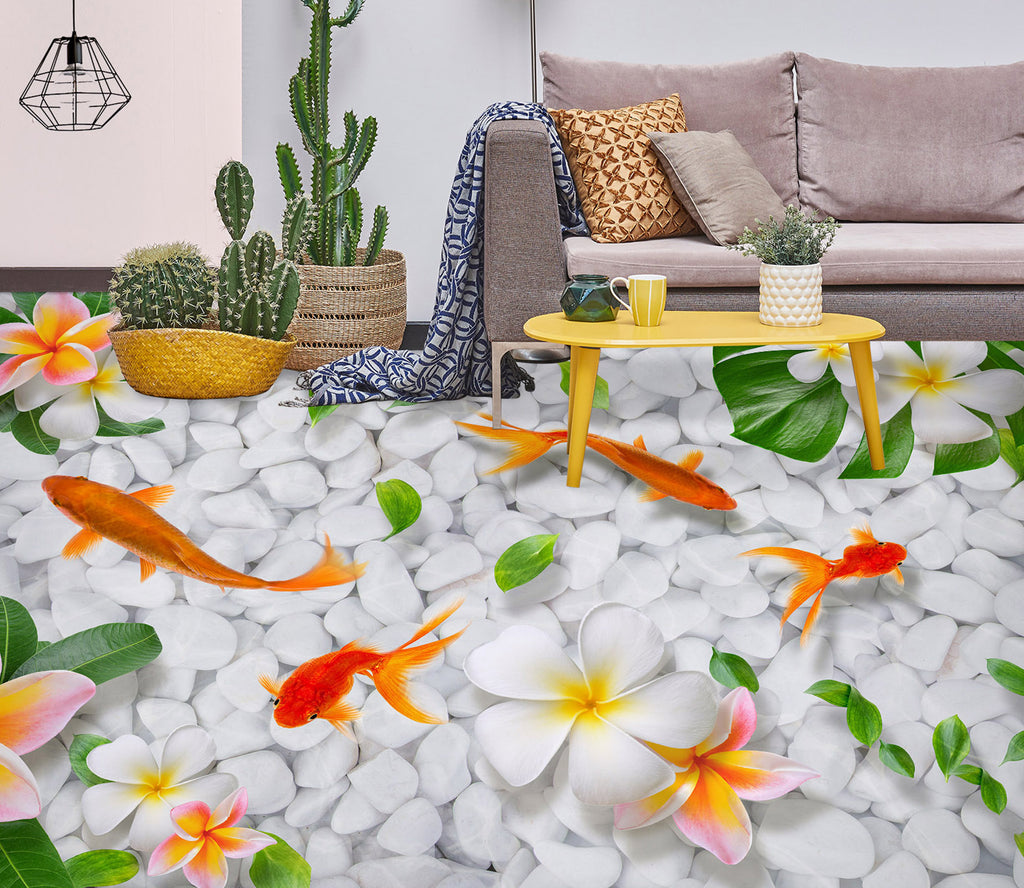 3D Goldfish And Flowers 276 Floor Mural Romy
