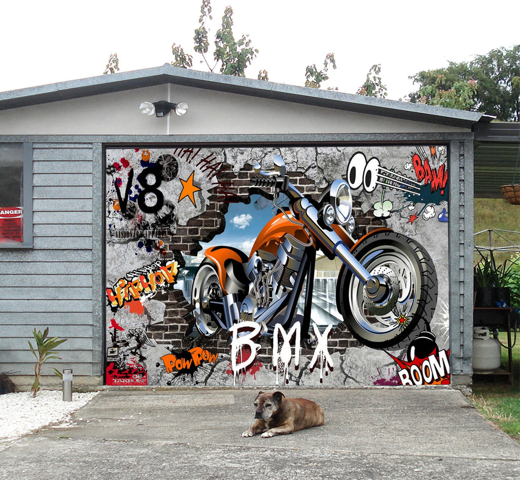 3D Graffiti Wall Motorcycle 63 Garage Door Mural