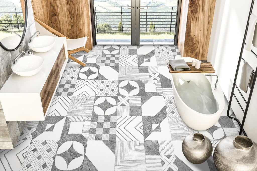 Make guidelines on the ground. Our Floor murals are always laid from the left to the right. It is essential that the first length is straight.