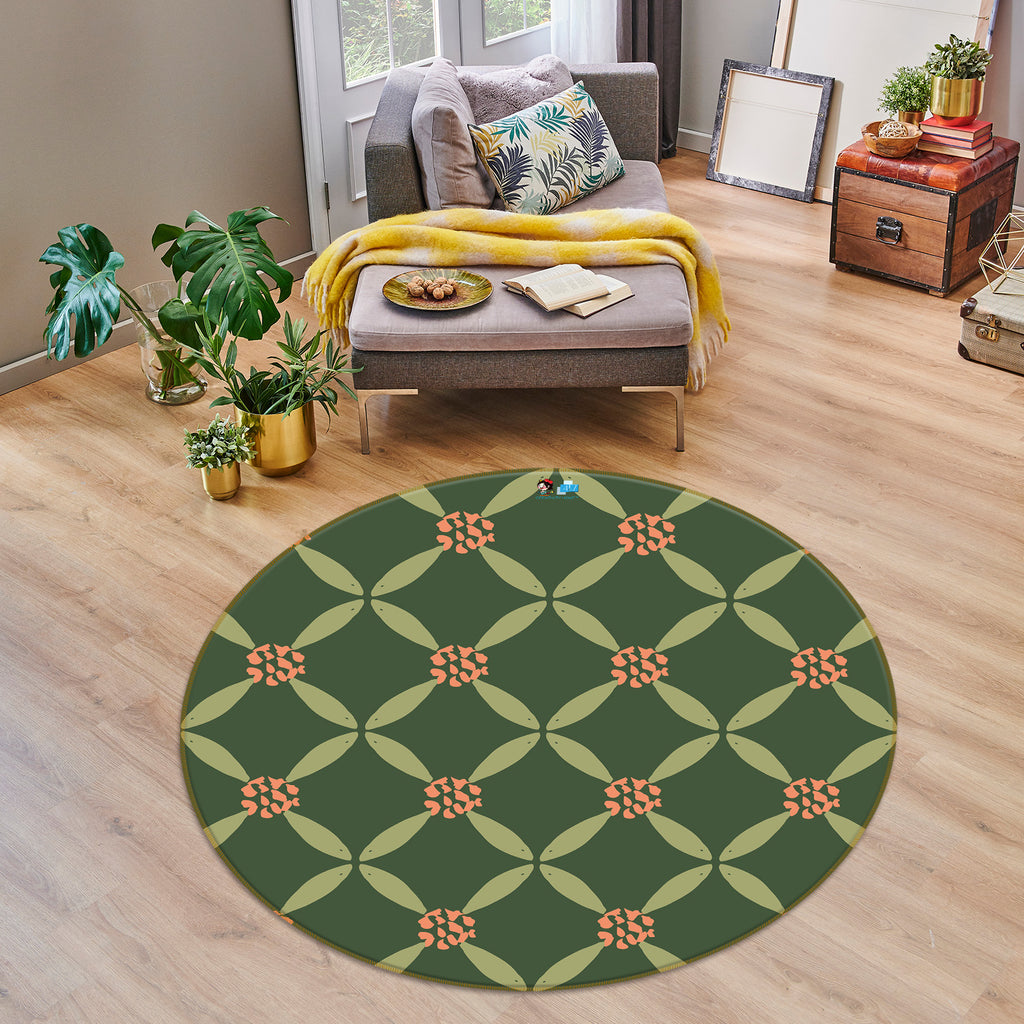3D Green Pattern Flowers Leaves 10504 Kashmira Jayaprakash Rug Round Non Slip Rug Mat