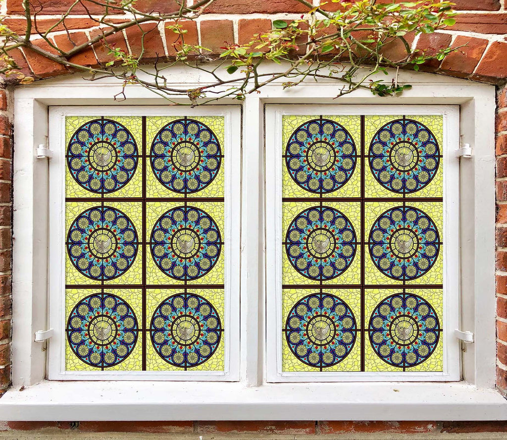 3D Green Round Flower 026 Window Film Print Sticker Cling Stained Glass UV Block
