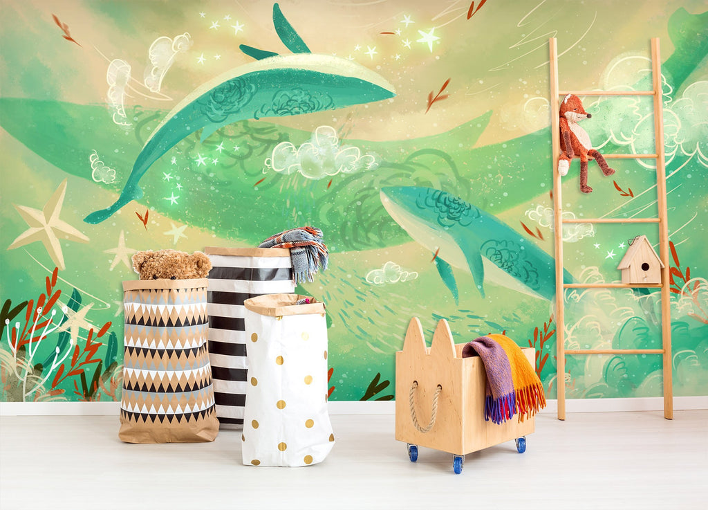 Make sure the wall surface is flat, clean and smooth. A clean and dry wall will help the adhesive from your wall mural to keep its stickiness. Put all panels on the ground, check the order. Measure and write down the dimensions of each panel. Mark vertical guidelines according to the panel's dimensions. Leave 2-3cm overlap between panels.