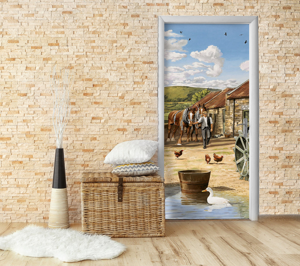 3D Horse Chicken 10317 Trevor Mitchell Door Mural Sinsin