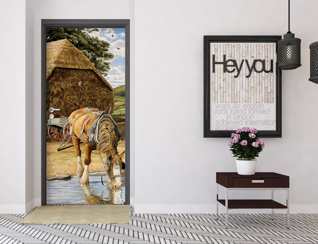 3D Horse Drink Water 10316 Trevor Mitchell Door Mural Sinsin