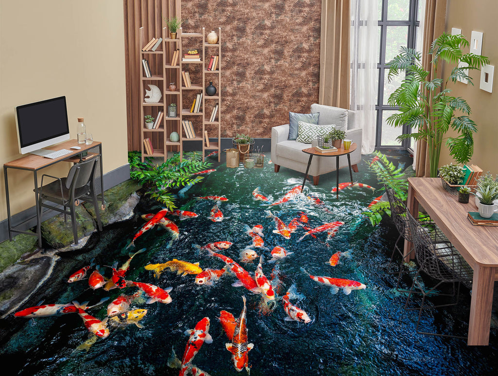 3D Koi's Fun 935 Floor Mural Wallpaper Murals Rug & Mat Print Epoxy waterproof bath floor