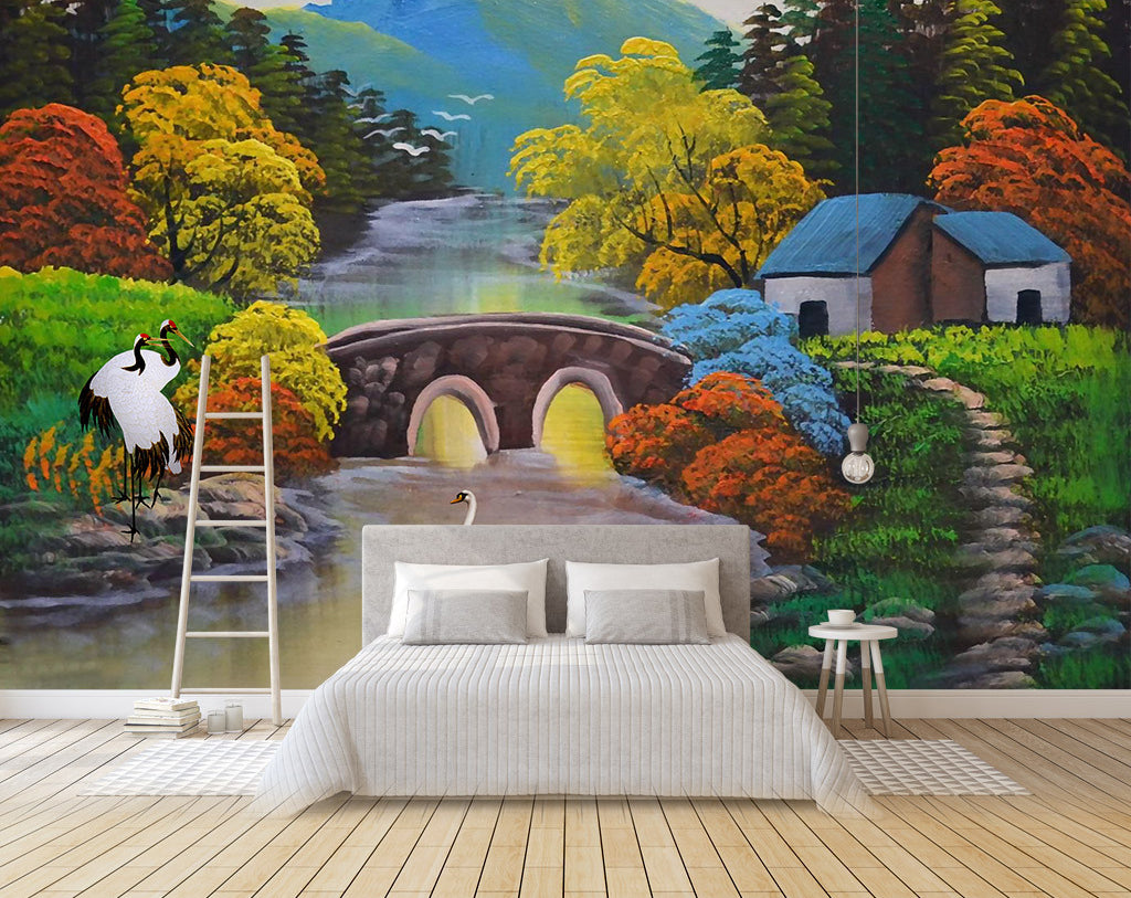 3D Lake Bridge WG110 Wall Murals