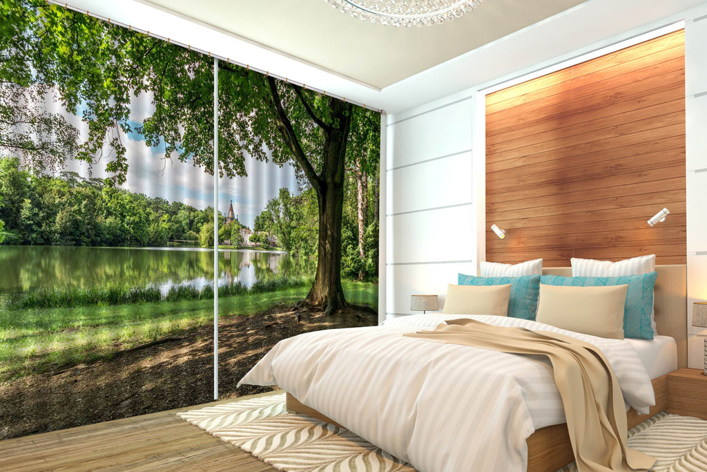 3D Lakeside Green Tree 524 Curtains Drapes
